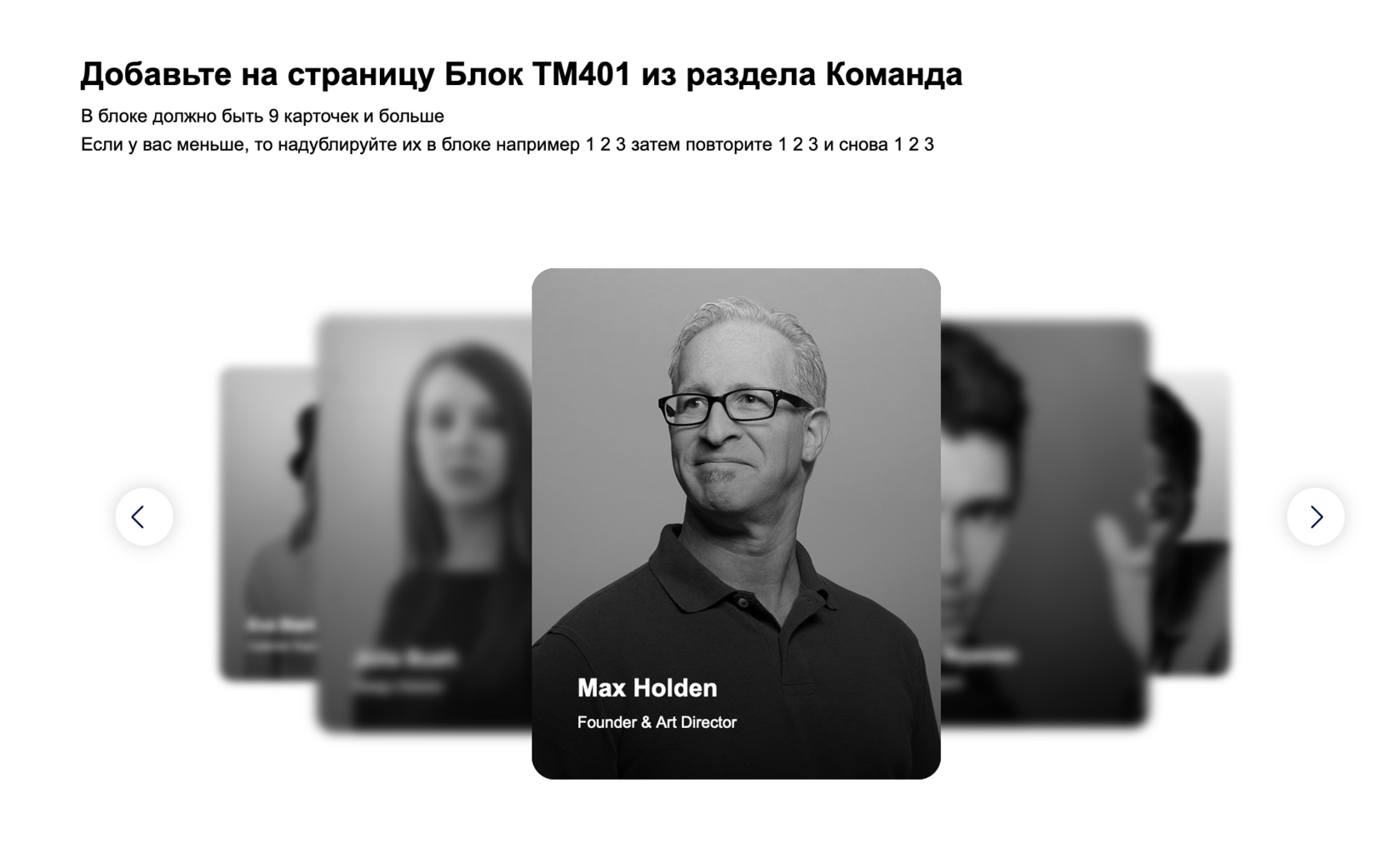 SWIPER Слайдер для блока TM401 из раздела Команда